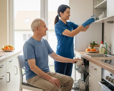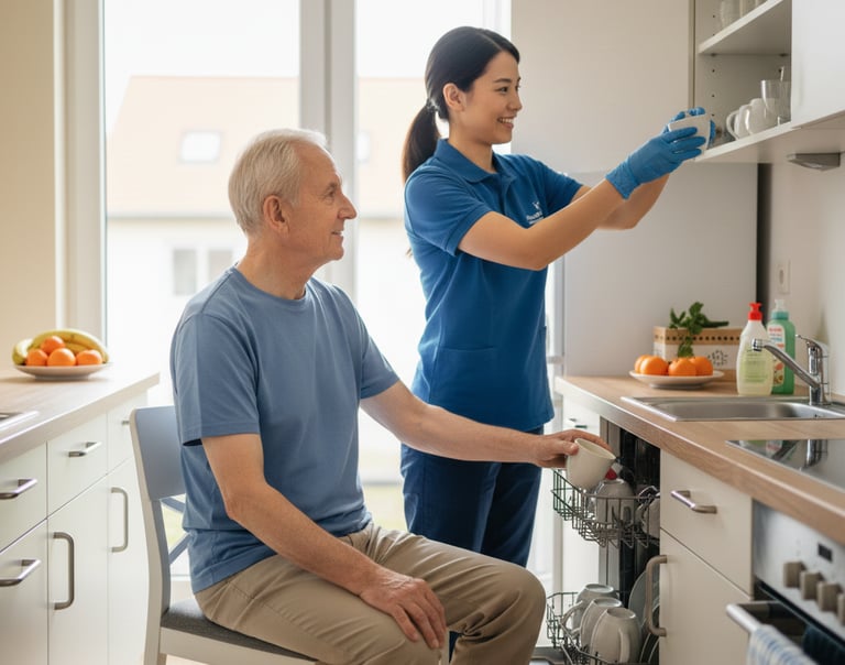Unsere zuverlässige Haushaltshilfe sorgt dafür, dass Sie sich in Ihrem Zuhause rundum wohlfühlen und entlastet Sie spürbar im Alltag. Wir übernehmen alle notwendigen Reinigungsarbeiten, die Wäschepflege sowie das Bügeln und Verräumen. Ebenso erledigen wir Ihre Einkäufe und bereiten auf Wunsch kleinere Mahlzeiten zu. Ziel ist es, Ihnen ein sauberes und angenehmes Wohnumfeld zu gewährleisten, damit Sie mehr Zeit für sich haben.