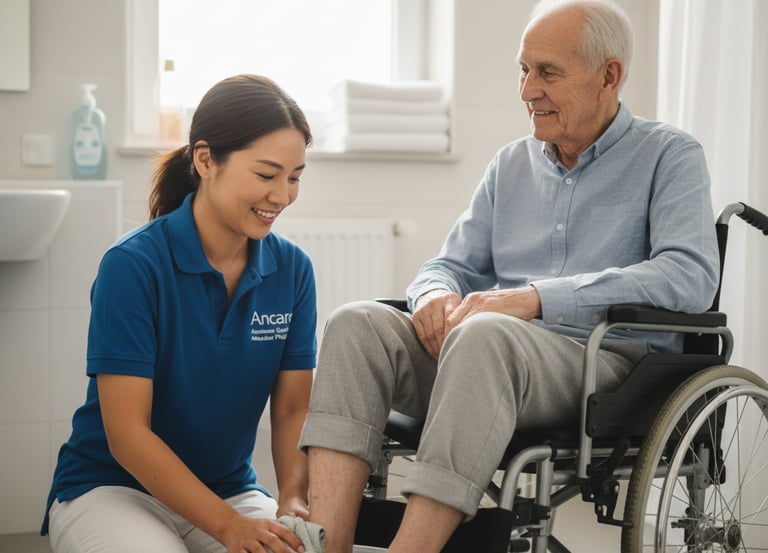 Unsere qualifizierten Pflegekräfte unterstützen Sie einfühlsam und professionell bei der täglichen Körperhygiene, von der Ganzwäsche bis zur Haut- und Haarpflege. Wir legen größten Wert auf die Wahrung Ihrer Würde und Privatsphäre und respektieren Ihre persönlichen Gewohnheiten. Ein zentrales Ziel ist die Aktivierungspflege, damit Sie Ihre Selbstständigkeit so weit wie möglich erhalten können. Zu den Leistungen gehört auch die diskrete Unterstützung beim An- und Auskleiden sowie bei der Ausscheidung.