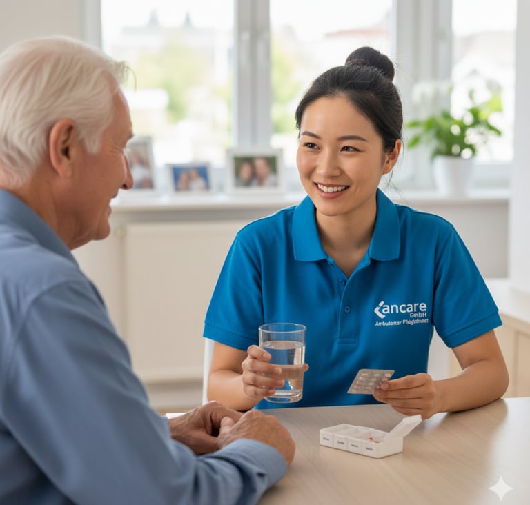 Wir unterstützen bei Medikamentengabe, Körperpflege und im Haushalt – individuell abgestimmt.